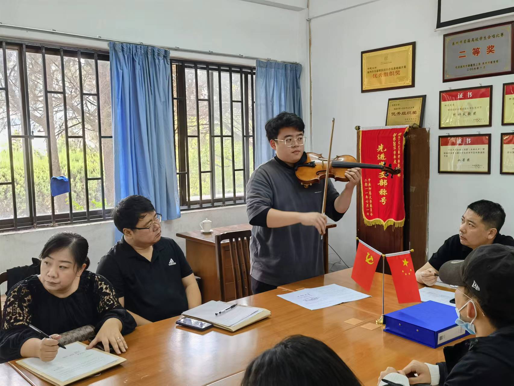 第一项,由庄达宏老师介绍乐曲《龙的传人》的两个不同版本,并对乐曲做了课程思政的融入。