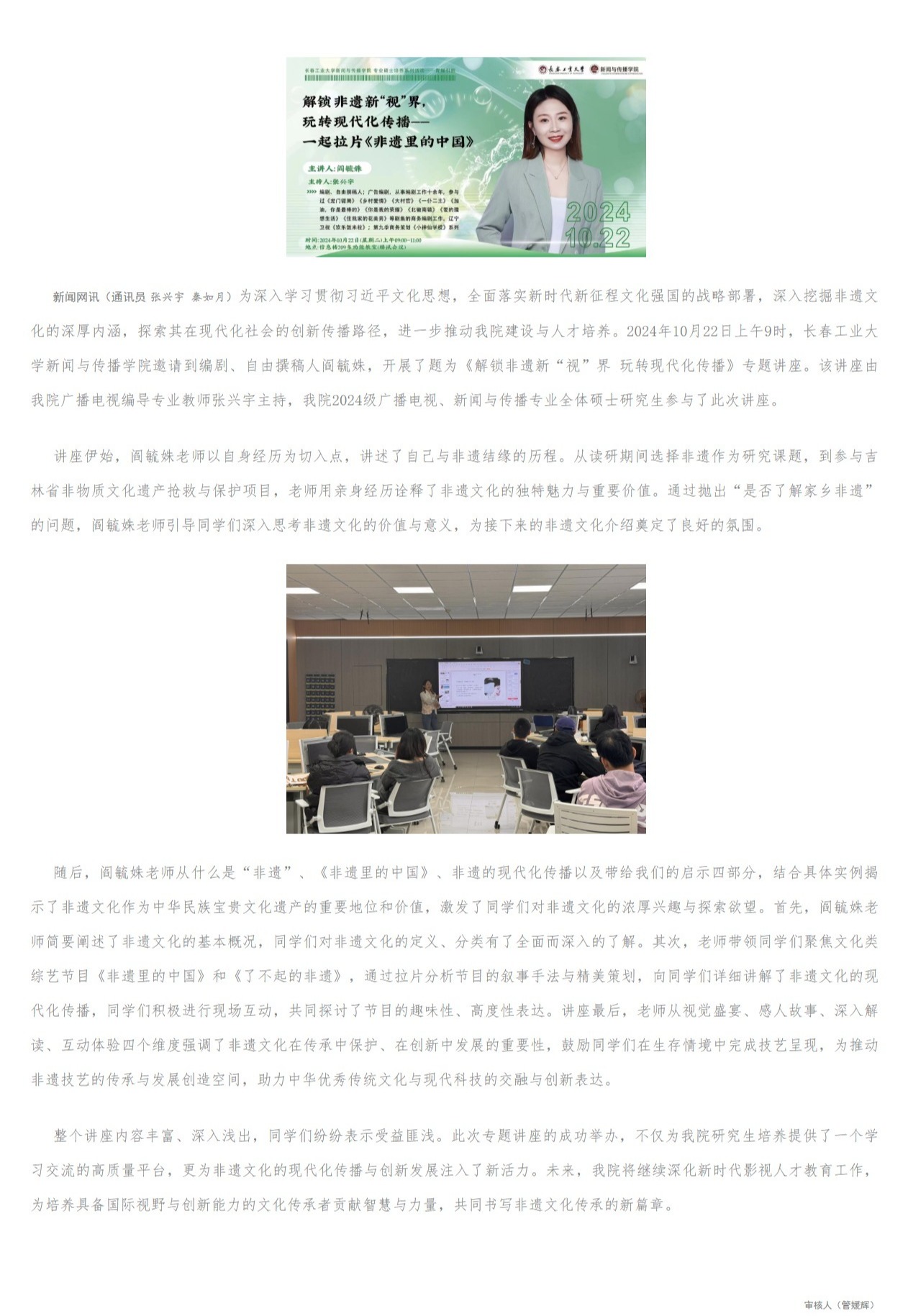 beat365在线体育官网登录入口beat365在线体育官网登录入口专业硕士培养系列讲座——解锁非遗新“视”界 玩转现代化传播