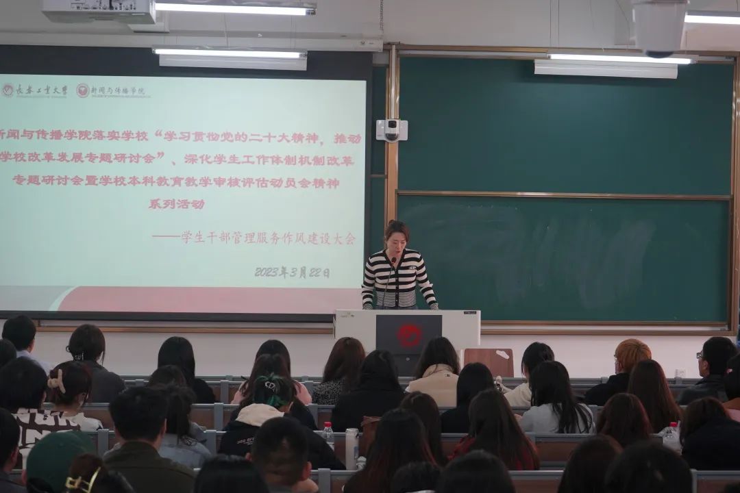 新闻网讯(通讯员 韩昀彤)为全面落为全面学习贯彻学校“学习贯彻党的二十大精神,推动学校改革发展专题研讨会”、“深化学生工作体制机制改革专题研讨会”精神,落实学校“综合改革年”和“本科教育质量提升年”的目标任务,紧密结合本科教育教学审核评估工作,进一步提高学生骨干整体素质,增强学生骨干队伍凝聚力,充分发挥学生干部在大学生思想政治教育的桥梁和纽带作用。3月22日,beat365在线体育官网登录入口召开学生干部转变管理服务作风建设动员大会,学院党委副书记周巍以及全体辅导员、学院所有学生骨干100余人参加了会议。会议由团委负责人崔悦主持。