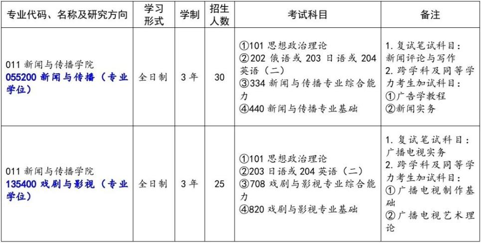 2026年beat365拟招收硕士研究生55人,其中新闻与传播专业硕士30人,戏剧与影视专业硕士25人,(学校按照正式下达的招生计划开展录取工作,根据各专业生源情况、初试成绩等因素进行适当调整)。实际招收推免生人数以“全国推荐免试攻读研究生信息公开暨管理服务系统”确认录取人数为准。