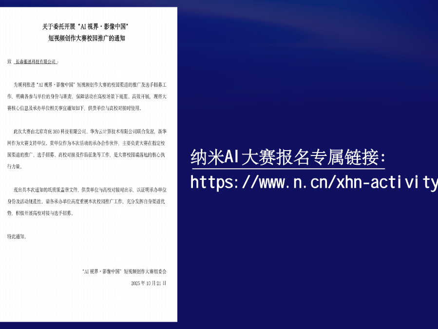 机会就在眼前,带上你的创意,奔赴赛场,让青春在数智光影中绽放别样光彩,用青年视角讲述中国故事,用创新力量书写时代答卷!